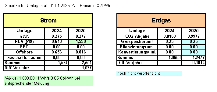 *Die Netzentgelte (Strom und Erdgas) stehen final erst am 01.01.2025 fest